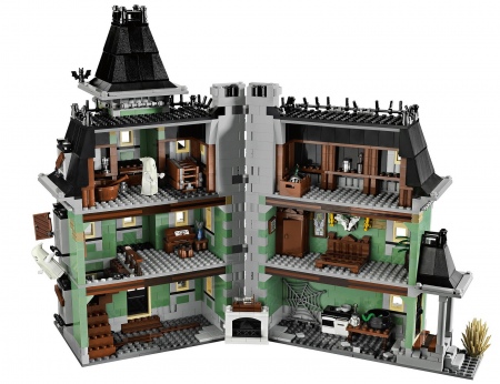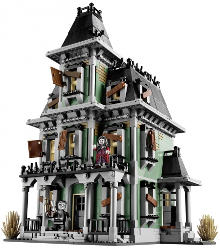 LEGO's first official Haunted House contains 2,064 pieces and is just awesome. 6 minifigures are included: 2 glow-in-the-dark ghosts, Vampyre, Vampyre's Bride, Zombie chef and butler.