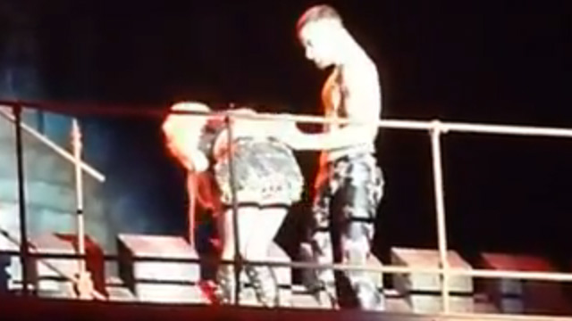 http://www.tmz.com/2012/10/08/lady-gaga-throws-up-on-stage-barf-puke/